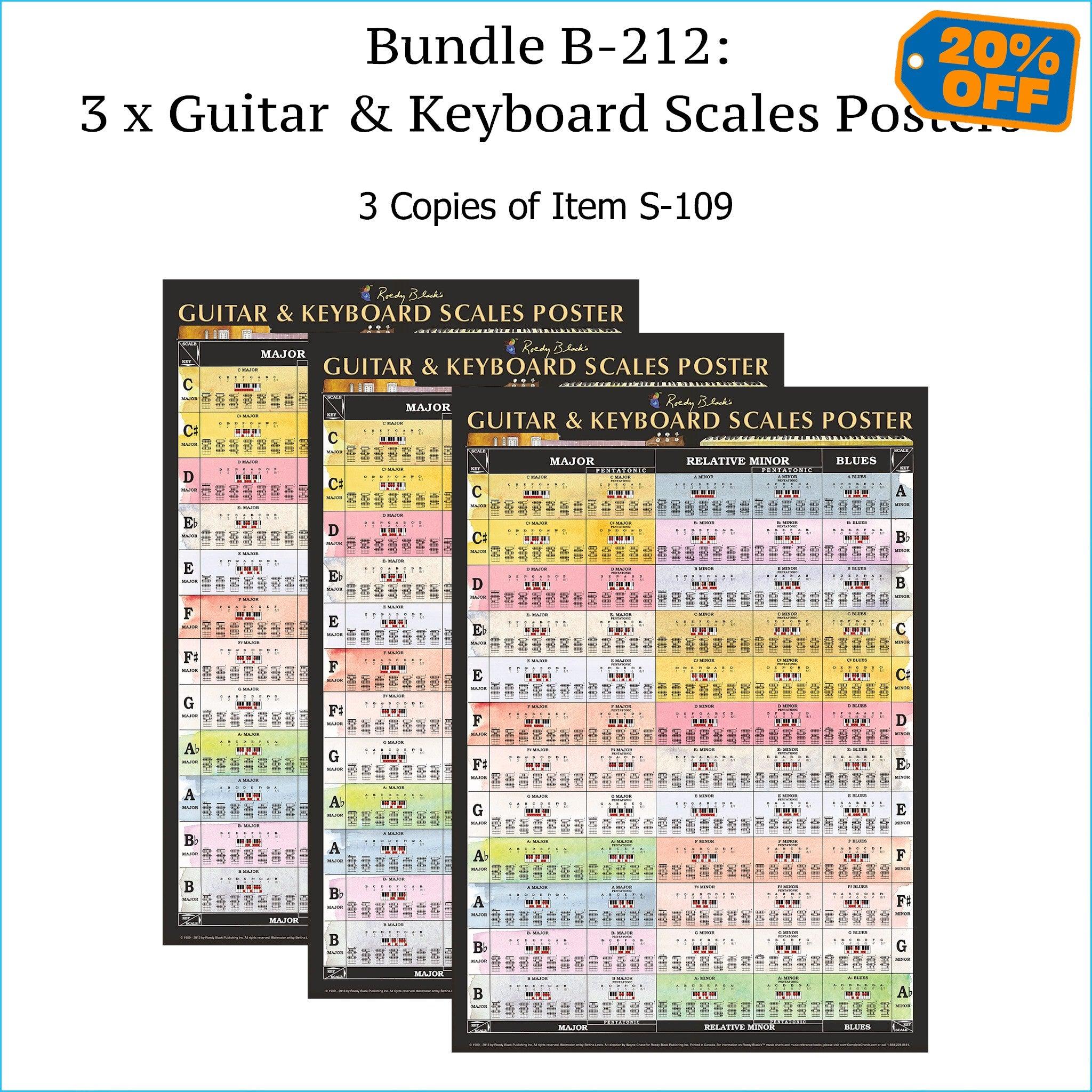 Bundle B-212: (THREE Items): "Guitar & Keyboard Scales Poster", 3 Copies. Laminated. FREE SHIPPING – USA & Canada.
